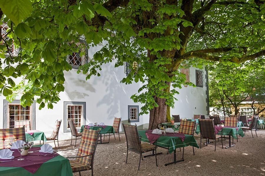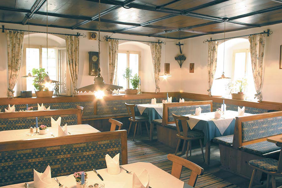 All diese Köstlichkeiten genießen Sie im dazu passenden Ambiente. Unsere gemütlichen Stuben im historischen Haupthaus unterstreichen den Genuss beim Essen. Und bei schönem Wetter verspricht unser idyllischer Gastgarten traumhafte Stunden. Speisen Sie im Schatten unseres jahrhundertealten Kastanienbaums oder der geschichtsträchtigen Kaisereiche. Wenn Sie an einem lauen Sommerabend die letzten Sonnenstrahlen des Tages auf der Haut spüren, während Sie Ihren Blick über das beeindruckende Panorama der Berge des Salzkammerguts schweifen lassen und an einem Glas besten österreichischen Weines nippen und über all dem der betörende Duft köstlichen Essens liegt, ist es nicht schwer, sich im Paradies zu wähnen.